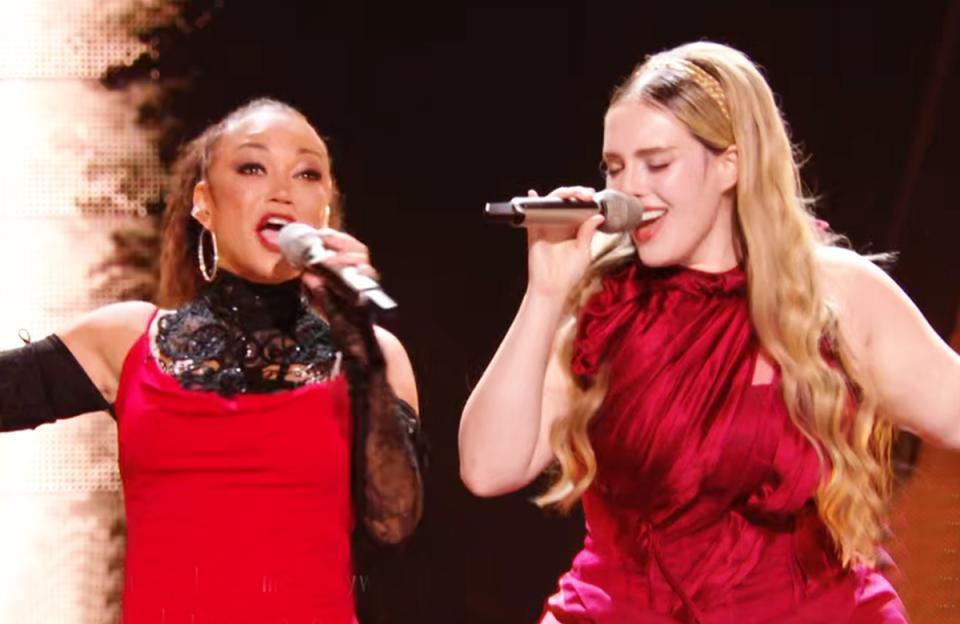 去年在节目里彻底玩嗨的香缇莫,今年又回归了,她和格瑞丝 · 金斯勒强强合作带来歌曲《Just Like Fire》。两位女歌手一出场就火力全开,舞台上又唱又跳,充满能量和生命力的一个表演,有代入感、有共鸣感。